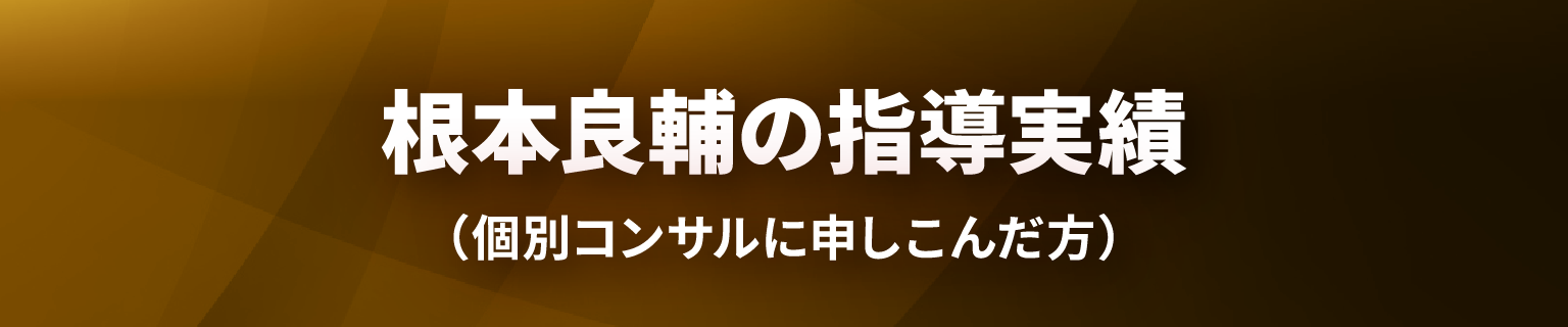 根本さんから恋愛を教わって2週間である程度恋愛で結果がでるようになりました。自信がついたので自分も恋愛講師として活動することになりました。根本さんにビジネスの基本の全て教えてもらえたので、すぐにお金を稼ぐことができるようになりました。根本さんのコンサルでは"恋愛力"と"自分能力で稼ぐ力"が身につくのでどんなビジネスコンサルよりもお勧めします。(Fさん、22歳)